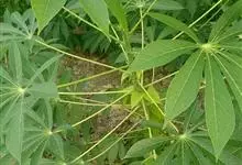 木薯,为大戟科木薯属的一种直立灌木,又名木番薯、树薯。木薯高1.5-3米;块根圆柱状。叶纸质,轮廓近圆形;裂片倒披针形至狭椭圆形;托叶三角状披针形。圆锥花序顶生或腋生,花萼带紫红色且有白粉霜。…全部>>
