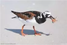 翻石鹬:体重82-135克,体长180-240毫米。体型高矮兼称,看起来十分的滑稽。它们在繁殖季时体色非常醒目,由栗色、白色和黑色交杂而成,嘴短,黑色,脚橙红色。到了冬天,翻石鹬身上的栗红色就会消失,…全部>>