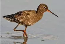 红脚鹬:体长28厘米,上体褐灰,下体白色,胸具褐色纵纹。飞行时腰部白色明显,次级飞羽具明显白色外缘。尾上具黑白色细斑。虹膜黑褐色,嘴长直而尖,基部橙红色,尖端黑褐色。脚较细长,亮橙红色,…全部>>