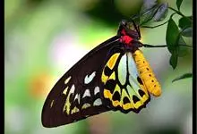 亚历山大女皇鸟翼凤蝶,又称大鸟翼蝶,是鳞翅目凤蝶科鸟翼蝶属蝴蝶;翅膀圆阔、褐色,雌性翅膀上会点缀着耀眼的白色斑纹;雄性翅膀上则闪耀着红蓝色的光泽。亚历山大女皇鸟翼凤蝶幼时很黑,身上长有红色的结节,…全部>>