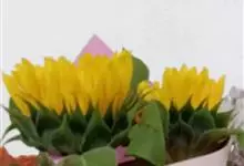 向日葵:是桔梗目、菊科、向日葵属的植物。因花序随太阳转动而得名。是一年生高大草本植物。茎粗壮,高1-3米,不分枝或有时上部分枝,被白色粗硬毛。叶互生,卵状心形或卵形,顶端急尖或渐尖,基生3出脉,…全部>>