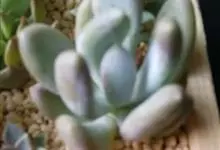 三日月美人叶子比较扁,有透明感,形状像星美人和青星美人,比较容易和其他美人多肉区分开来,三日月美人最突出特点是:叶顶端的尖非常突出、显眼。全部>>