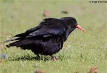 红嘴山鸦,是脊索动物门鸟纲雀形目鸦科鸟类。红嘴山鸦的成鸟通体羽毛纯黑色具有蓝色金属光泽,翼和尾泛有蓝绿色金属光泽;虹膜暗褐色,喙较为尖细,并且呈镰状下弯,喙和脚朱红色。…全部>>
