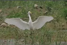 黄嘴白鹭,也叫白老、唐白鹭,珍稀水禽,中型涉禽。体长46-65厘米,体重320-650克。雌雄羽色相似,通体白色。嘴、颈、脚均长。夏季嘴橙黄色,眼线蓝色,脚黑色,…全部>>
