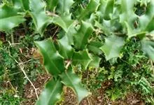 构骨叶冬青学名枸骨,又名猫儿刺、老虎刺、八角刺、鸟不宿、构骨、狗骨刺、猫儿香和老鼠树。常绿灌木或小乔木,高1-3米,二年枝褐色,三年生枝灰白色,叶片厚革质,花淡黄色,果球形,直径8-10毫米,成熟时…全部>>