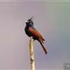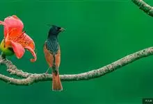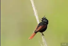 凤头鹀:属小型鸣禽,体重21-31克,体长134-175毫米。以头顶的细长羽冠为特征,雄鸟全身几乎均为黑色具蓝色光泽,两翅和尾以及尾上覆羽栗红色。雌鸟具短的褐色羽冠,上体暗橄榄褐色,…全部>>