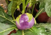 擘蓝是十字花科,芸薹属二年生草本植物,高可达60厘米,茎短,无毛,离地面处膨大实心长圆球体或扁球体,绿色,其上生叶。叶片略厚,边缘有不规则裂齿;叶柄常有少数小裂片;总状花序顶生;种子有棱角。4月开花,…全部>>