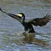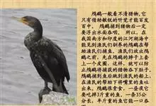 普通鸬鹚是属于鲣鸟目鸬鹚科鸬鹚属鸟类,又名水老鸦、鱼鹰、乌鬼、黑鱼郎等。体长720—900毫米,雌雄同型。通体黑色,有绿褐色金属光泽;喙厚重,喙基和喉囊橙黄色,脸颊及喉白色;夏羽颈及头饰具白色丝状羽,…全部>>