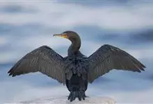 普通鸬鹚是属于鲣鸟目鸬鹚科鸬鹚属鸟类,又名水老鸦、鱼鹰、乌鬼、黑鱼郎等。体长720—900毫米,雌雄同型。通体黑色,有绿褐色金属光泽;喙厚重,喙基和喉囊橙黄色,脸颊及喉白色;夏羽颈及头饰具白色丝状羽,…全部>>