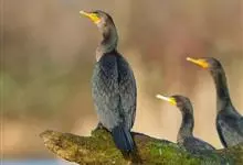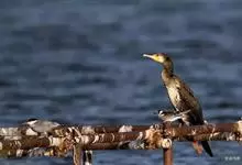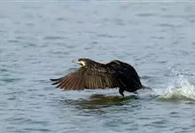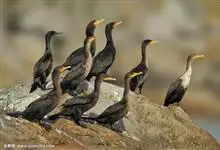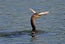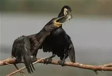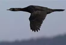 普通鸬鹚是属于鲣鸟目鸬鹚科鸬鹚属鸟类,又名水老鸦、鱼鹰、乌鬼、黑鱼郎等。体长720—900毫米,雌雄同型。通体黑色,有绿褐色金属光泽;喙厚重,喙基和喉囊橙黄色,脸颊及喉白色;夏羽颈及头饰具白色丝状羽,…全部>>
