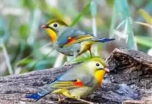 银耳相思鸟小型鸟类,体长14~18厘米。头顶黑色,耳羽银灰色,前额橙黄色;外侧飞羽橙黄色,基部朱红色,极为鲜艳、醒目。尾圆形,尾上、尾下覆羽朱红色,尾暗灰褐色,外侧尾羽橙黄色,其余上体橄榄绿或橄榄黄色。…全部>>