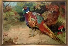 环颈雉是雉科、雉属的一种走禽,共有30个亚种。体重900-1050克,体长53-89厘米。体型较家鸡略小,但尾巴却长得多。雄鸟和雌鸟羽色不同,雄鸟羽色华丽,多具金属反光,…全部>>