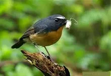 棕胸蓝姬鹟:属小型鸣禽,体长10-13厘米,体重6-10克,是一种体型很小的灰蓝及棕色鹟,雌雄羽色不同,雄鸟羽色艳丽,雌鸟羽色暗淡。雄鸟上体深蓝色,胸橙黄色,下腹灰白色。亚成鸟具褐色斑驳。…全部>>