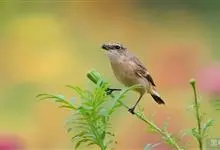 黑喉石鵖,雀形目鹟科石鵖属小型鸣禽,俗名谷尾鸟、黑喉石。其体色为黑褐色。雄鸟头部、背部、两翼及尾黑色,颈侧及翼上具白斑,胸部和腹侧红棕色,腰及尾下覆羽白色。雌鸟体色为褐色,上体具深色纵纹,胸部染棕色,…全部>>