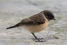 漠䳭是鹟科、䳭属小型鸟类,体长14-17厘米。雄鸟上体沙棕色,腰和尾上覆羽白色,两翅和尾黑色,尾基部白色,眼纹白色,眉纹以下整个脸和头侧以及颏、喉黑色,其余下体白色。雌鸟和雄鸟大致相似,但颏、喉白色,…全部>>