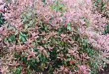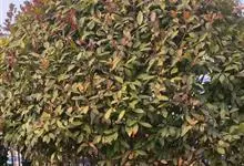 红叶石楠 是蔷薇科,石楠属杂交种,为常绿小乔木或灌木,乔木高可达5米、灌木高可达2米。叶片革质,长圆形至倒卵状、披针形,叶端渐尖,叶基楔形,叶缘有带腺的锯齿,花多而密,复伞房花序,花白色,梨果黄红色,…全部>>