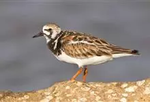 翻石鹬:体重82-135克,体长180-240毫米。体型高矮兼称,看起来十分的滑稽。它们在繁殖季时体色非常醒目,由栗色、白色和黑色交杂而成,嘴短,黑色,脚橙红色。到了冬天,翻石鹬身上的栗红色就会消失,…全部>>
