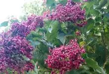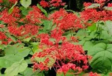 赪桐 Sweet)是唇形科、大青属灌木,高1-4米,叶片圆心形,顶端尖或渐尖,基部心形,边缘有疏短尖齿,表面疏生伏毛,二歧聚伞花序组成顶生,大而开展的圆锥花序,花序的最后侧枝呈总状花序,花萼红色,…全部>>