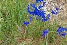 翠雀是毛茛科翠雀属的多年生草本植物。茎高可达65厘米;基生叶及茎下部叶具长柄,叶圆五角形,两面疏被短柔毛或近无毛;萼片紫蓝色,椭圆形或宽椭圆形;种子沿棱具翅;花期5-10月。…全部>>