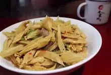 榨菜肉丝是四川省传统的名菜,属于川菜。此菜在四川家庭和中低档饭馆常年制作,原料易得,操作简便,咸淡适口,脆嫩鲜美。全部>>