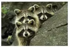 浣熊:食肉目、浣熊科的一种哺乳动物,成年体长40-65厘米,尾长20-40厘米,体重4-10千克,雄性稍大于雌性。体型较小。面部有黑色眼斑,形象滑稽,绰号“蒙面大盗”;尾部有5到7条黑白相间的环纹。…全部>>