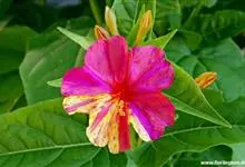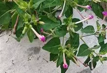 即紫茉莉,英文名:Four-o'clock,Marvel of Peru,为紫茉莉科、紫茉莉属多年生草本植物,一年生栽培。株高50~80cm。根粗壮,茎多分枝而散生。叶对生,卵形或心脏形。花数朵簇生…全部>>