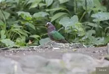 绿背金鸠体长约25厘米,是中等体型、尾甚短的地栖型斑鸠。下体粉红,头顶灰色,额白,腰灰,两翼具亮绿色。雌鸟头顶无灰色。飞行时背部两道黑色和白色的横纹清晰可见。主要栖息于2000米以下的山地森林中,…全部>>