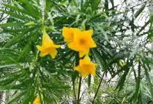 黄花夹竹桃K. Schum.),又名“酒杯花”“柳木子”“黄花状元竹”,是夹竹桃科,黄花夹竹桃属下的常绿乔木植物。高达5m,全株无毛,树皮棕褐色;叶互生,近革质,线形或线状披针形;花大,黄色,具香味,…全部>>
