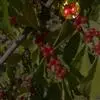 欧李,蔷薇科李属落叶灌木植物,高1.5米。树皮灰褐色,小枝被柔毛;叶互生长圆形或椭圆状披针形;花与叶同时开放,单生或并生,花瓣白色或粉红色;核果近球形,熟时鲜红色或橘黄色。花期4-5月,果期5-6月。…全部>>