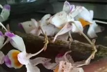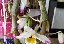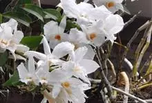 肿节石斛,是兰科石斛属多年生草本植物。肿节石斛茎斜立或下垂,肉质,圆柱形;叶纸质,长圆形;花序生于已落叶老茎上部,花白色,上部紫红色,有香气;花瓣宽长圆形,唇瓣白色,中部以下金黄色,上部紫红色,…全部>>