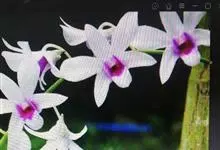 肿节石斛,是兰科石斛属多年生草本植物。肿节石斛茎斜立或下垂,肉质,圆柱形;叶纸质,长圆形;花序生于已落叶老茎上部,花白色,上部紫红色,有香气;花瓣宽长圆形,唇瓣白色,中部以下金黄色,上部紫红色,…全部>>