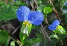 鸭跖草,是鸭跖草科鸭跖草属的—年生披散草本植物。鸭跖草的茎匍匐生根,多分枝;叶披针形或卵状披针形;萼片膜质,花瓣深蓝色;蒴果椭圆形;种子棕黄色,一端平截,腹面平,有不规则窝孔;花期7-9月,…全部>>