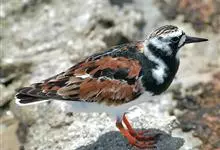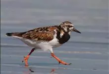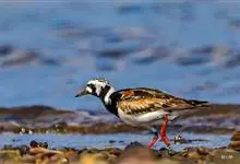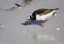 翻石鹬:体重82-135克,体长180-240毫米。体型高矮兼称,看起来十分的滑稽。它们在繁殖季时体色非常醒目,由栗色、白色和黑色交杂而成,嘴短,黑色,脚橙红色。到了冬天,翻石鹬身上的栗红色就会消失,…全部>>