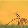 黑喉石鵖,雀形目鹟科石鵖属小型鸣禽,俗名谷尾鸟、黑喉石。其体色为黑褐色。雄鸟头部、背部、两翼及尾黑色,颈侧及翼上具白斑,胸部和腹侧红棕色,腰及尾下覆羽白色。雌鸟体色为褐色,上体具深色纵纹,胸部染棕色,…全部>>