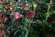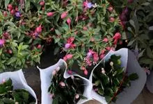 倒挂金钟是柳叶菜科倒挂金钟属亚灌木植物。茎直立,多分枝;幼枝带红色,被短柔毛与腺毛,老时渐无毛;叶对生,卵形或窄卵形,脉常带红色;常带红色,被短柔毛与腺毛;花筒红色,筒状钟形,…全部>>