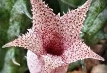 豹皮花 L. C. Leach)是夹竹桃科、豹皮花属植物。肉质植物,茎亮绿色,几株簇生在一起,高约10厘米,状似仙人掌,四棱,棱稍钝,棱具粗厚软刺,光滑,绿色。无叶。…全部>>