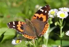 大红蛱蝶Vanessa indica Herbst,翅黑褐色,外缘波状。前翅M1脉外伸成角状,翅顶角有几个白色小点,亚顶角斜列4个白斑,…全部>>