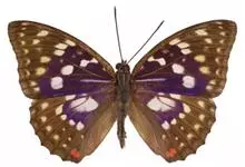 大紫蛱蝶为大型蝶种,翅展约86~110mm。翅紫黑色,有白色斑点点缀其中,雄蝶的翅具强烈紫色虹彩,其余部分暗褐色,后翅臀角具粉色斑。雌蝶体型较大,但是没有蓝紫金属光泽。原产于东亚的蝶类。…全部>>