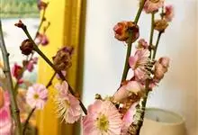 梅:蔷薇科,木本植物。形态多样,通常为小乔木,高4-10米,树皮紫红色,叶片呈弧型或椭圆形,叶边常具小锐锯齿,灰绿色。花单生或有时2朵同生于1芽内,直径2-2.5厘米,香味浓,先于叶开放;花色丰富,…全部>>