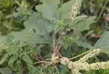 反枝苋是苋科苋属的一年生草本植物。株高达1米;茎密被柔毛;叶菱状卵形或椭圆状卵形,先端锐尖或尖凹,两面及边缘被柔毛,下面毛较密;穗状圆锥花序,顶生花穗较侧生者长;花被片长圆形或长圆状倒卵形,…全部>>