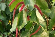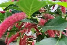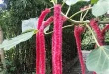 红穗铁苋菜:为大戟科、铁苋菜属植物,灌木,高0.5-3米。嫩枝被灰色短绒毛,毛逐渐脱落,小枝无毛。 花序色泽鲜艳,葇荑花序下垂,如狐狸尾状,雌花近卵形,长约0.8毫米,顶端急尖,具短毛;子房近球形,…全部>>