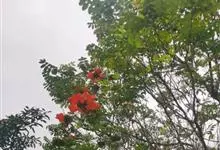 火焰树是紫葳科、火焰树属乔木,树皮平滑,灰褐色。奇数羽状复叶,对生,连叶柄长达45厘米;小叶13-17枚,叶片椭圆形至倒卵形,伞房状总状花序,顶生,密集;被褐色微柔毛,具有明显的皮孔;花冠一侧膨大,…全部>>