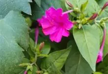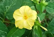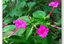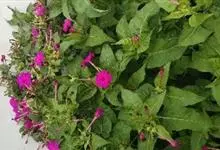 即紫茉莉,英文名:Four-o'clock,Marvel of Peru,为紫茉莉科、紫茉莉属多年生草本植物,一年生栽培。株高50~80cm。根粗壮,茎多分枝而散生。叶对生,卵形或心脏形。花数朵簇生…全部>>