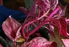 血苋是苋科血苋属的多年生草本植物。高1-2米;茎粗壮,常带红色,有分枝,有纵棱及沟;叶片宽卵形至近圆形,两面有贴生毛,紫红色;雌雄异株,花成顶生及腋生,圆锥花序,由多数穗状花序形成,苞片及小苞片呈卵形,…全部>>