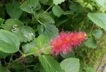 红穗铁苋菜:为大戟科、铁苋菜属植物,灌木,高0.5-3米。嫩枝被灰色短绒毛,毛逐渐脱落,小枝无毛。 花序色泽鲜艳,葇荑花序下垂,如狐狸尾状,雌花近卵形,长约0.8毫米,顶端急尖,具短毛;子房近球形,…全部>>