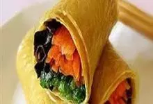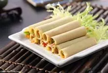 腐皮卷素菜是一道广东省的传统名菜,属于粤菜系。把香菇用清水浸软,去蒂,切细丝,胡萝卜,榨菜分别洗净,切细丝,豆芽,韭黄分别洗净,韭黄切段。用2汤匙油爆香姜丝,胡萝卜,榨菜,放入香菇同炒透,将豆芽放入…全部>>