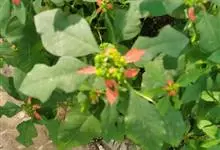 猩猩草:常绿或半常绿灌木,盆栽时株高0.5米-2米,在亚热带地区可长到6米以上。茎直立而光滑,单叶互生,卵状椭圆形至阔披针形,具不规则的深缺刻。长10-15厘米。花小,有蜜腺,排列成密集的伞房花序。…全部>>