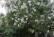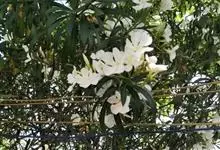 白花夹竹桃是夹竹桃科、夹竹桃属植物夹竹桃的栽培品种。常绿直立大灌木,枝条灰绿色;嫩枝条具稜,被微毛,老时毛脱落。叶3-4枚轮生,下枝为对生,叶面深绿,叶背浅绿色;侧脉纤细平行与中脉成直角;叶柄扁平,…全部>>
