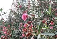 夹竹桃,又名红花夹竹桃、欧洲夹竹桃,是夹竹桃科夹竹桃属的一种常绿直立大灌木,枝条灰绿色,含水液。叶披针形,3叶轮生。聚伞花序顶生,花冠粉红至深红色,花冠漏斗状,有特殊香味。蓇葖果,圆柱形。种子长圆形,…全部>>