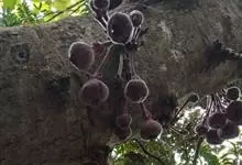 大果榕是桑科榕属的小乔木,株高可达10米;幼枝被柔毛;叶互生,宽卵状心形或近圆形;雄花无梗、匙形、花丝长,雌花生于雌株榕果内,子房白色;榕果簇生于树干基部或老茎短枝上、扁球形或陀螺形,…全部>>
